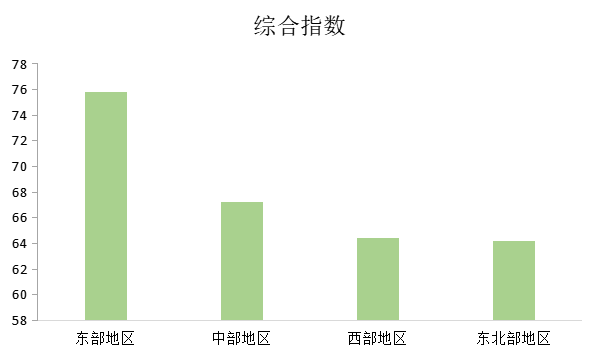 分区域看,中国省市文化产业发展综合指数不同区域差距较大,东部地区10省市综合指数平均得分远高于中部、西部、东北地区;中部地区6省综合指数平均得分略高于西部、东北地区;西部地区和东北地区得分基本持平。其中,综合指数得分前十名的省市中,前6名位于东部地区。