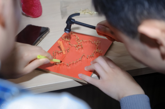 在动人的旋律中感悟恢弘的革命历史,在激烈的竞赛中拓展党史知识储备,协同合作制成一幅幅红色钉画……新颖有趣的游戏环节带动了青年们的学习热情,为活动现场营造了积极热烈的氛围。
