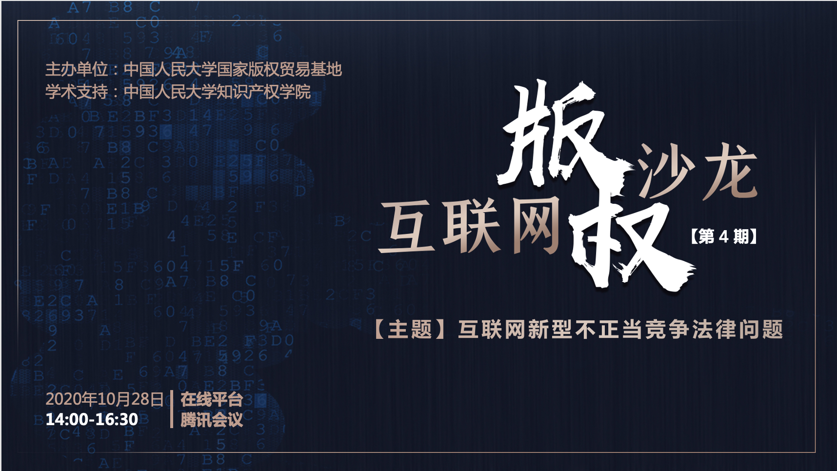 随着信息技术的发展、新兴商业模式的更新和行业竞争的加剧,互联网环境下的新型不正当竞争行为层出不穷,严重扰乱了互联网产业的健康发展。为深入探讨科技进步背景下互联网产业的新业态和新模式,分析新型不正当竞争行为对互联网产业发展的危害,提出针对性的应对措施,10月28日下午,中国人民大学国家版权贸易基地举办第4期互联网版权沙龙,聚焦互联网新型不正当竞争法律问题。本期沙龙由中国人民大学知识产权学院提供学术支持。