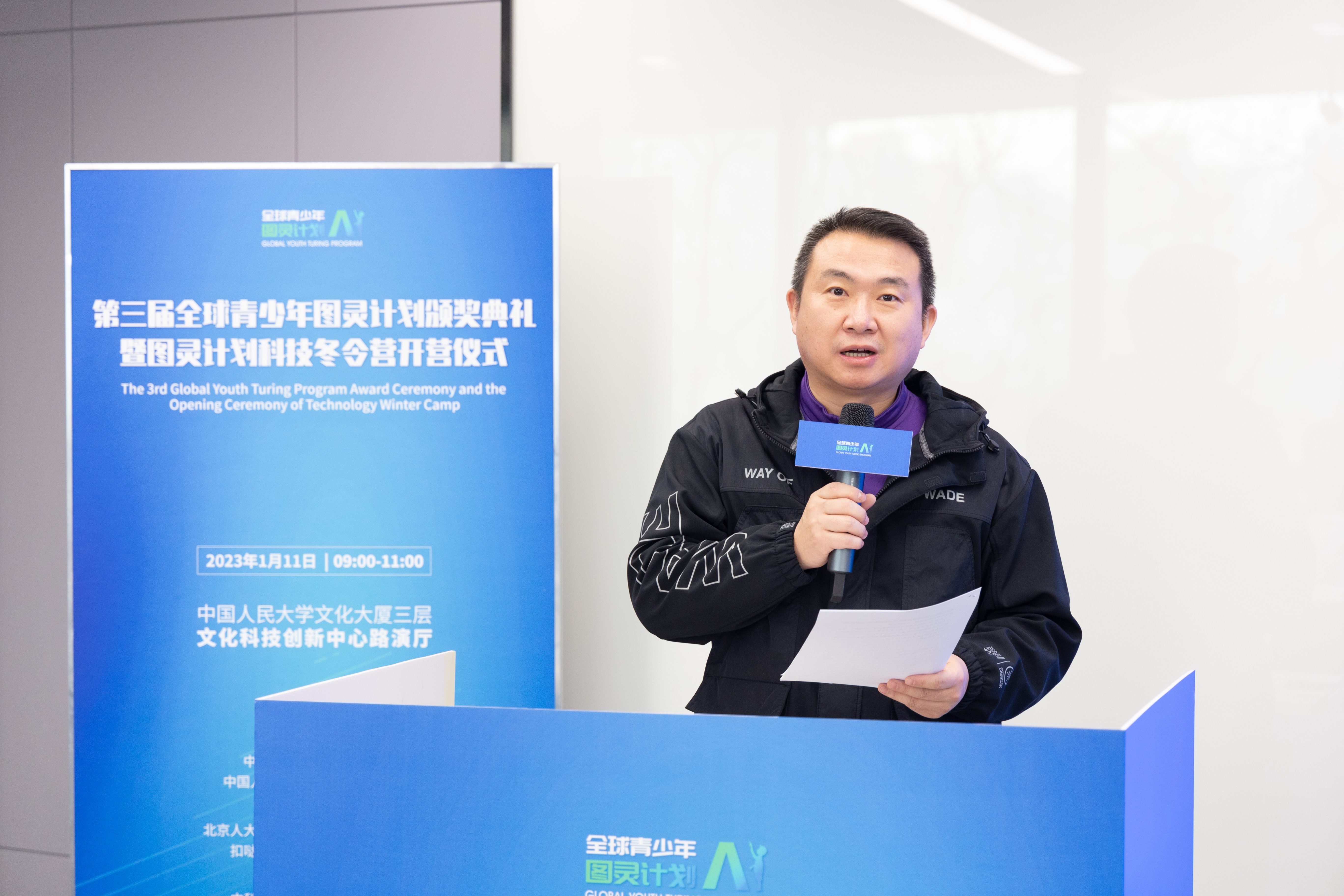 全球青少年图灵计划负责人、中国人民大学文化科技园总经理白连永致开场辞。